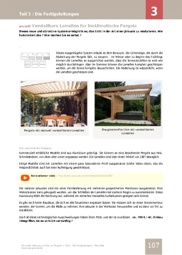 Zusätzlich zu unseren Anleitungen bieten wir unseren Mitgliedern auch die Möglichkeit, unsere Bauvideos in HD zu konsultieren, die Schritt für Schritt die verschiedenen Prozesse für den Bau einer Pergola beschreiben.