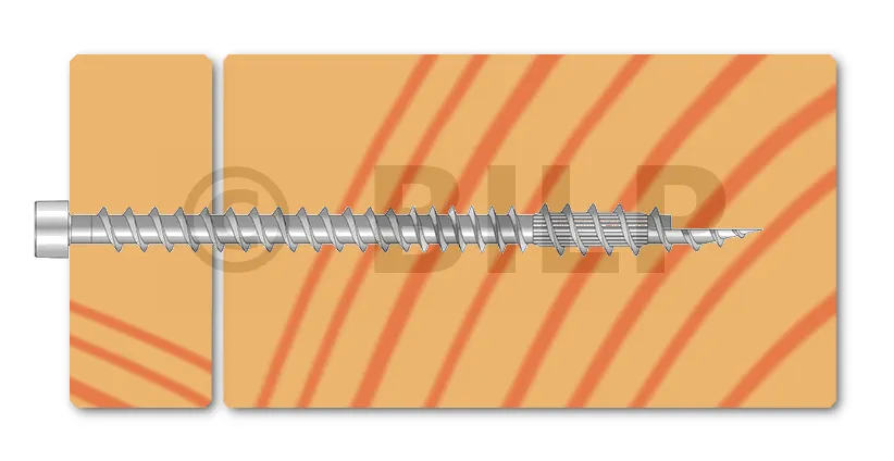 - Bei Schrauben mit Teilgewinde sind die Stärken nur für Konfigurationen angegeben, bei denen das Gewinde nicht mehr als 5 mm in das Holzelement unter dem Kopf hineinragt, um einen optimalen Anzug zu gewährleisten.