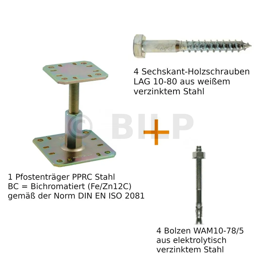 - 1 Pfostenträger PPRC aus dichromatisiertem Stahl,