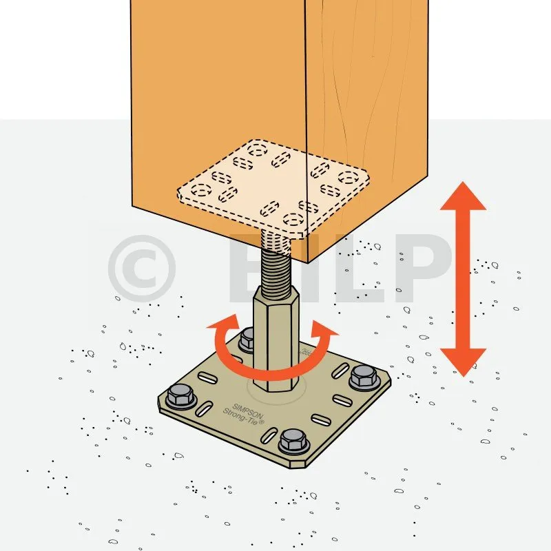 Die PPRC-Pfostenträger sind in der Höhe verstellbar. Sie sind einfach und schnell zu montieren und können auf der Baustelle verstellt werden.