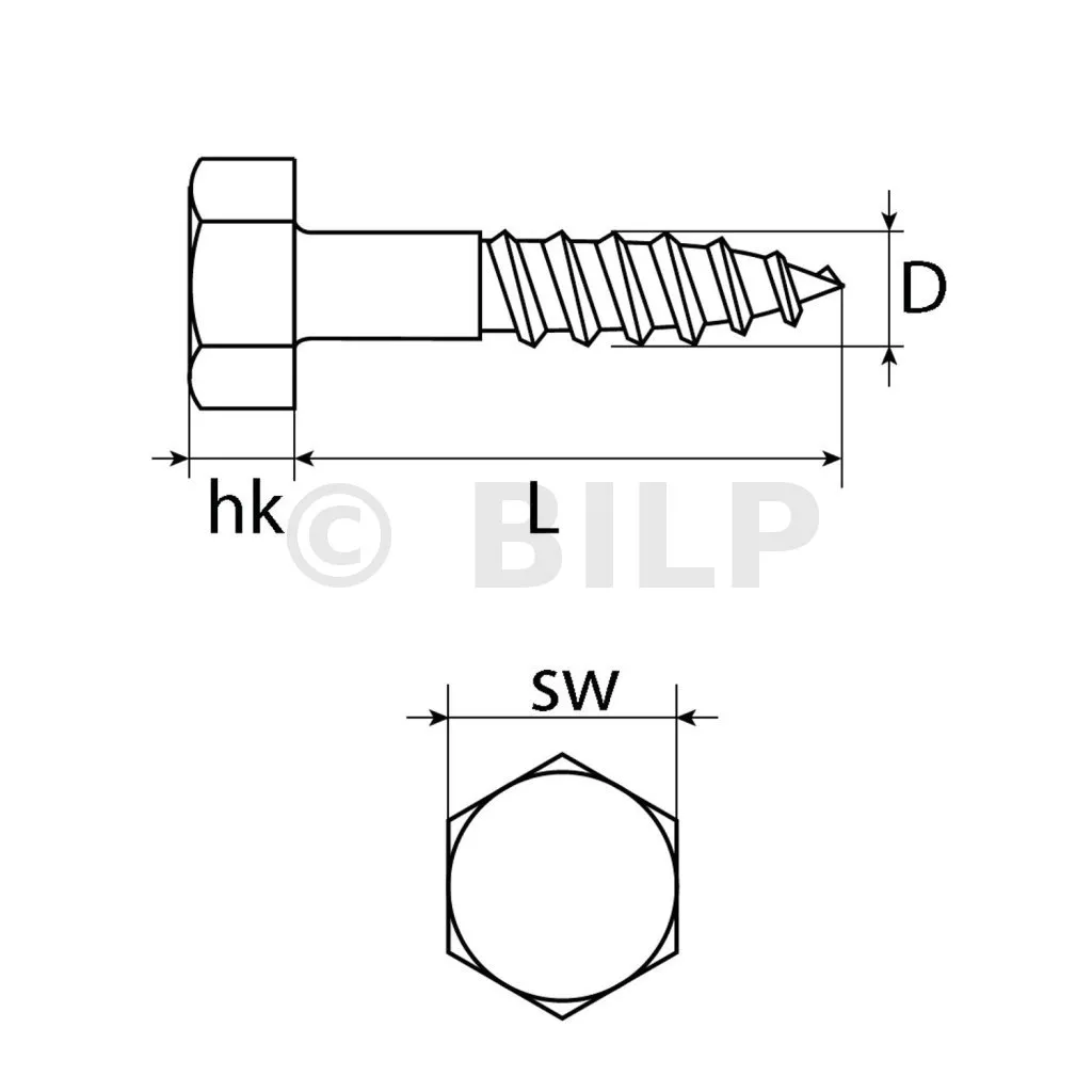 - Schraubentyp: Sechskant-Holzschraube.