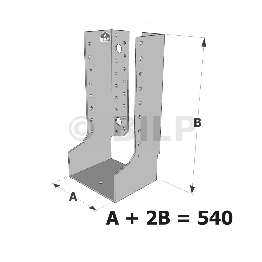 Große Balkenschuhe mit innenliegenden Schenkeln, Baureihe GLI ECONOMIC (540 mm breit, 2,5 mm dick, 90 mm tief) - Réf. GLI540/2.5X