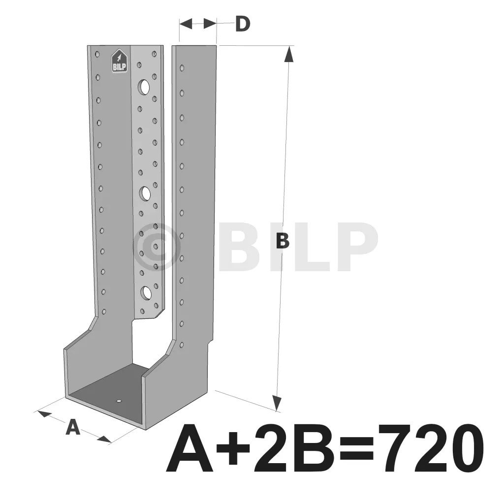 Große Balkenschuhe mit innenliegenden Schenkeln, Baureihe GLI ECONOMIC (Größe 720mm, Dicke 4mm, Tiefe 90mm) - Réf. GLI720/4X