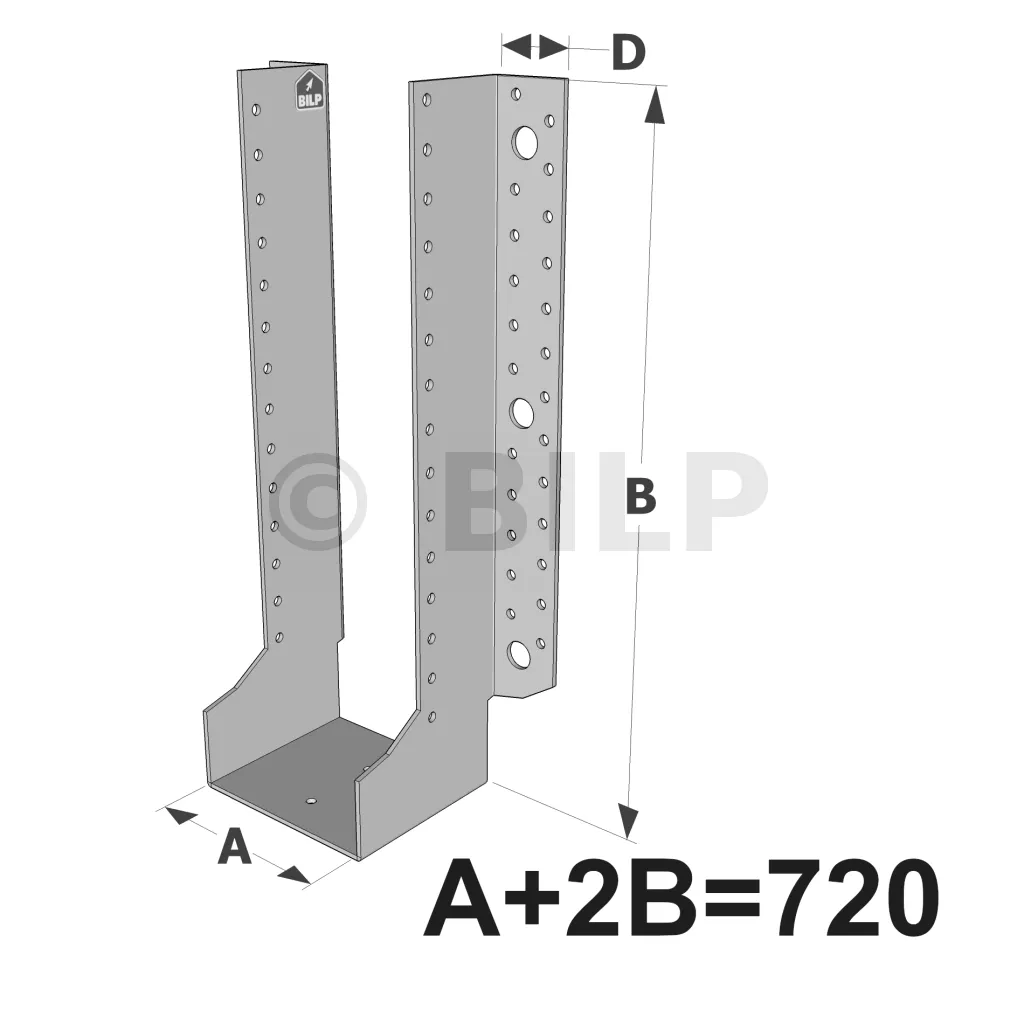 Große Balkenschuhe mit außenliegenden Schenkeln, GLE-Sortiment ECONOMIC (Größe 720mm, Dicke 2.5mm, Tiefe 90mm) - Réf. GLE720/2.5X