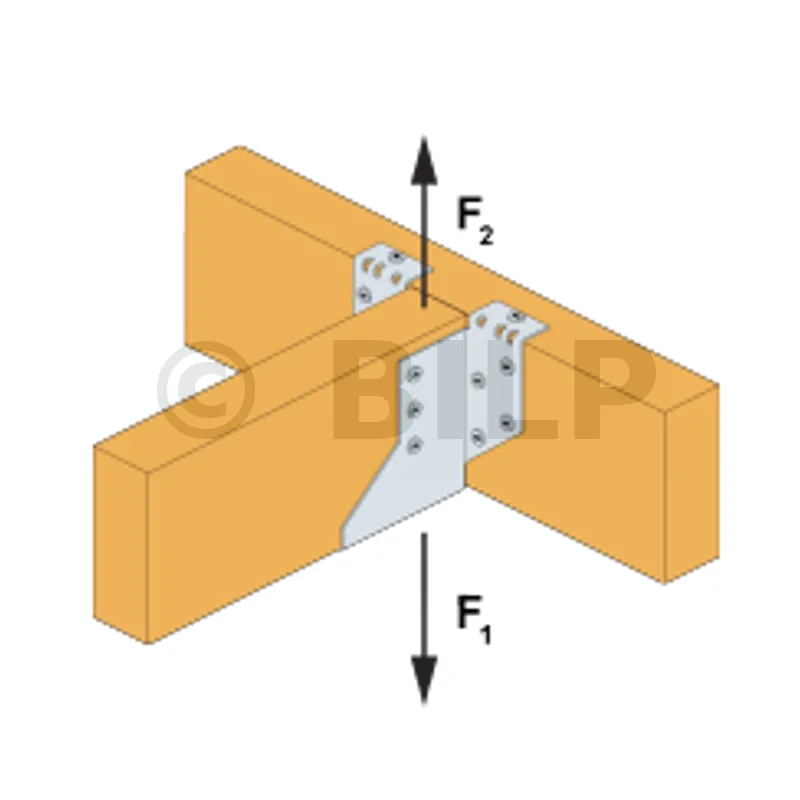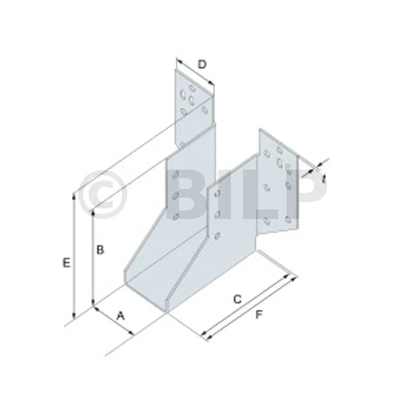 Balkenschuh mit Schenkeln für Dachbinder, Höhe (B) : 90 mm, Breite (A) : 38 mm, - Réf. SHT115/38