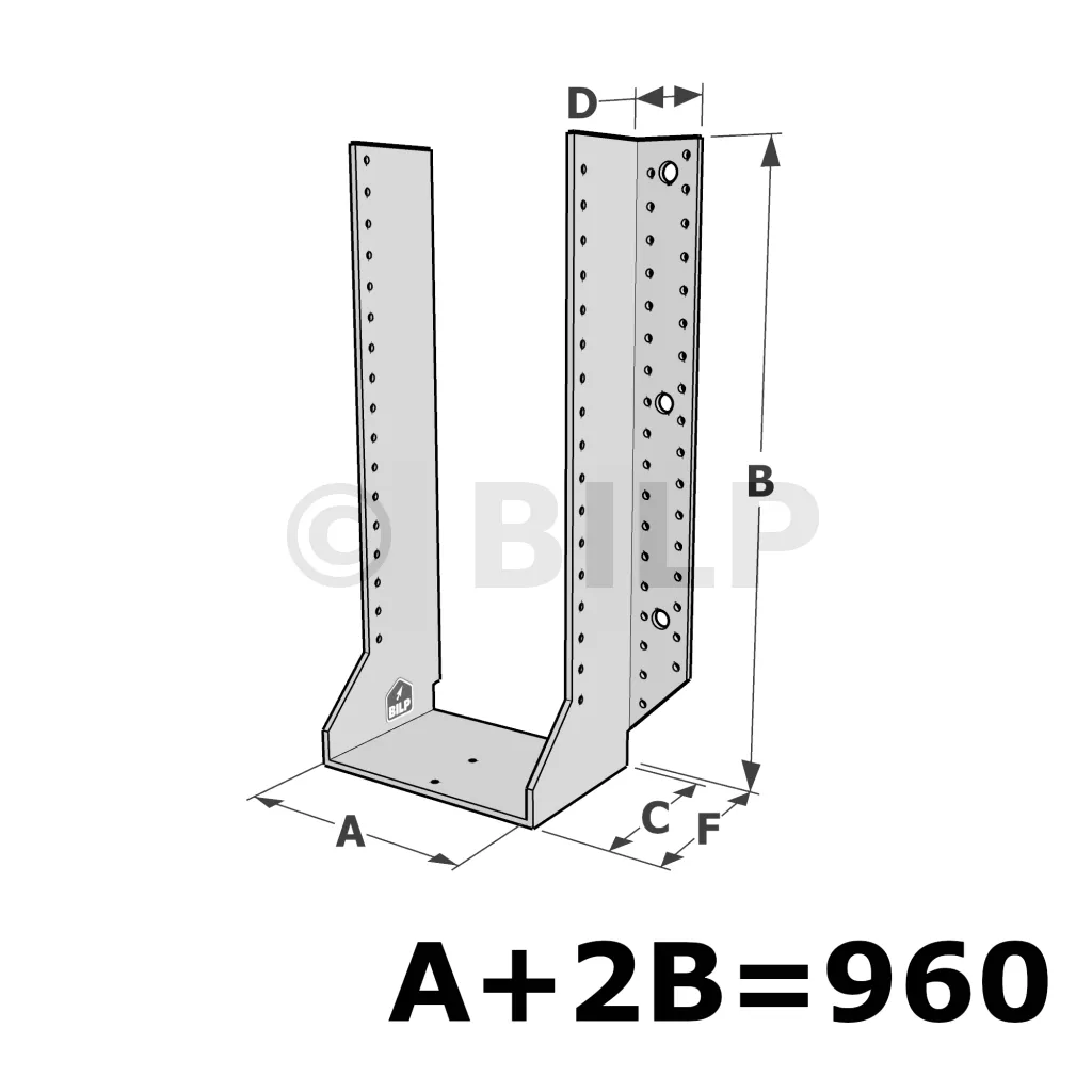 Große Balkenschuhe mit außenliegenden Schenkel, GSE CLASSIC-Sortiment (Dicke 4mm, Tiefe 110mm) - Réf. GSE960/4X-AL