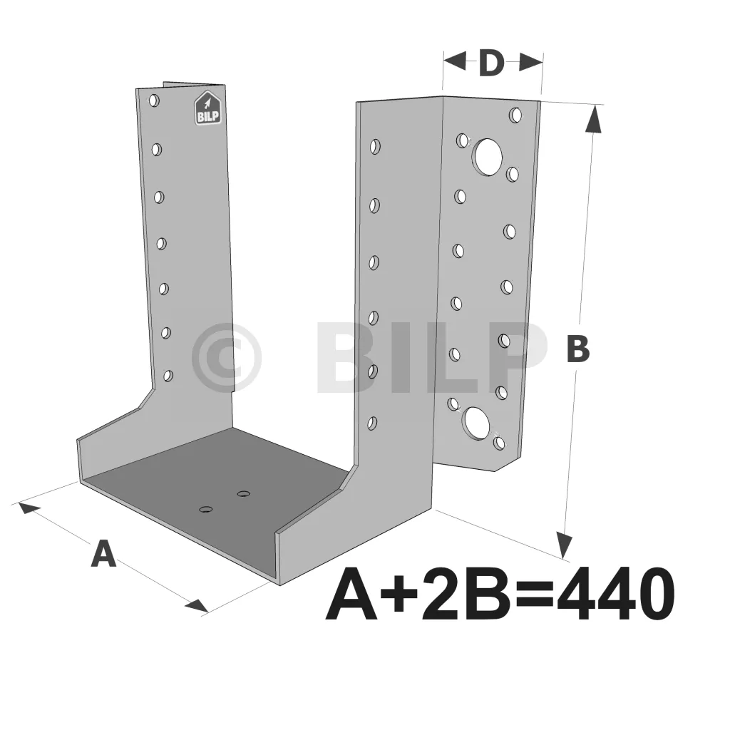 Balkenschuh mit außenliegenden Schenkeln, SAE-Sortiment NACH MAß (Dicke 2 mm, Tiefe 84 mm) - Réf. SAEL440/2X