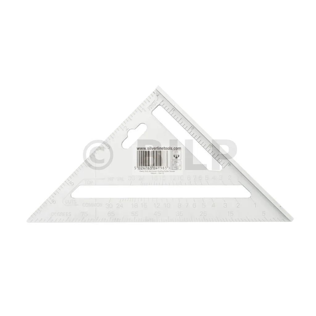 Hochbelastbarer Winkel aus Aluminiumgusslegierung, leicht ablesbare, erhabene imperiale Skalen und Umrechnungstabelle für die Sparrenmontage. Erhöhte Kanten für sicheren Stand. 0-90° Winkelmesserskala. Als Hilfsmittel beim Sägen für Winkelmessungen und Schnitte verwenden. Gewicht 125 g. Abmessungen : 185 x 185 x 260 mm.