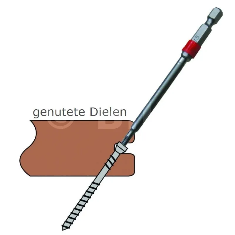Speziell für die Befestigung von Terrassendielen geeignete Schraube guide de vissage CAMO MARKSMAN.
