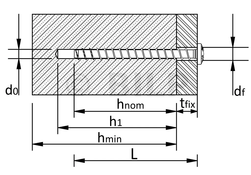 - Durchmesser der Durchgangsbohrung im zu befestigenden Element, df9mm
