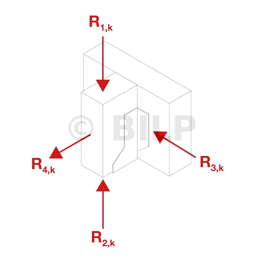 Die absteigenden Werte werden wie folgt berechnet : R1,k=min (Stichsparren + 2*Grat; Total)