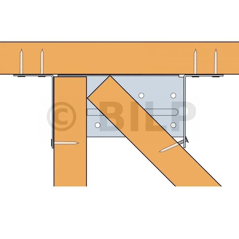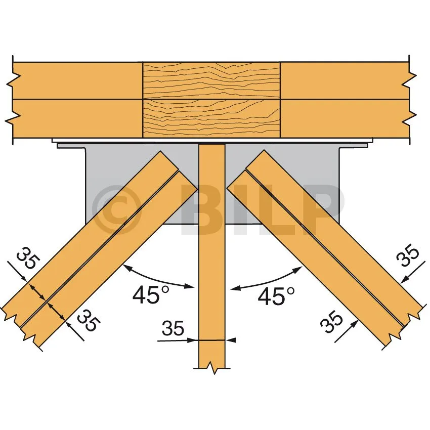 Die Balkenträger für Krüppelwalm werden in dem Binder mit einem Querschnitt von 38 mm verwendet. Sie ermöglichen die Herstellung eines Walmdachs durch das Zusammenfügen der Halbbinder des Grates und des Giebels. Die Modelle unterscheiden sich je nach Art der Anwendung.