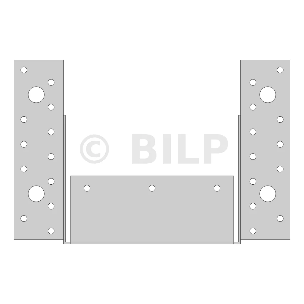 - Bohrungen auf dem HauptträgerSeitenwände : 6Ø5; 8Ø5x7.5 - Boden : 10Ø5