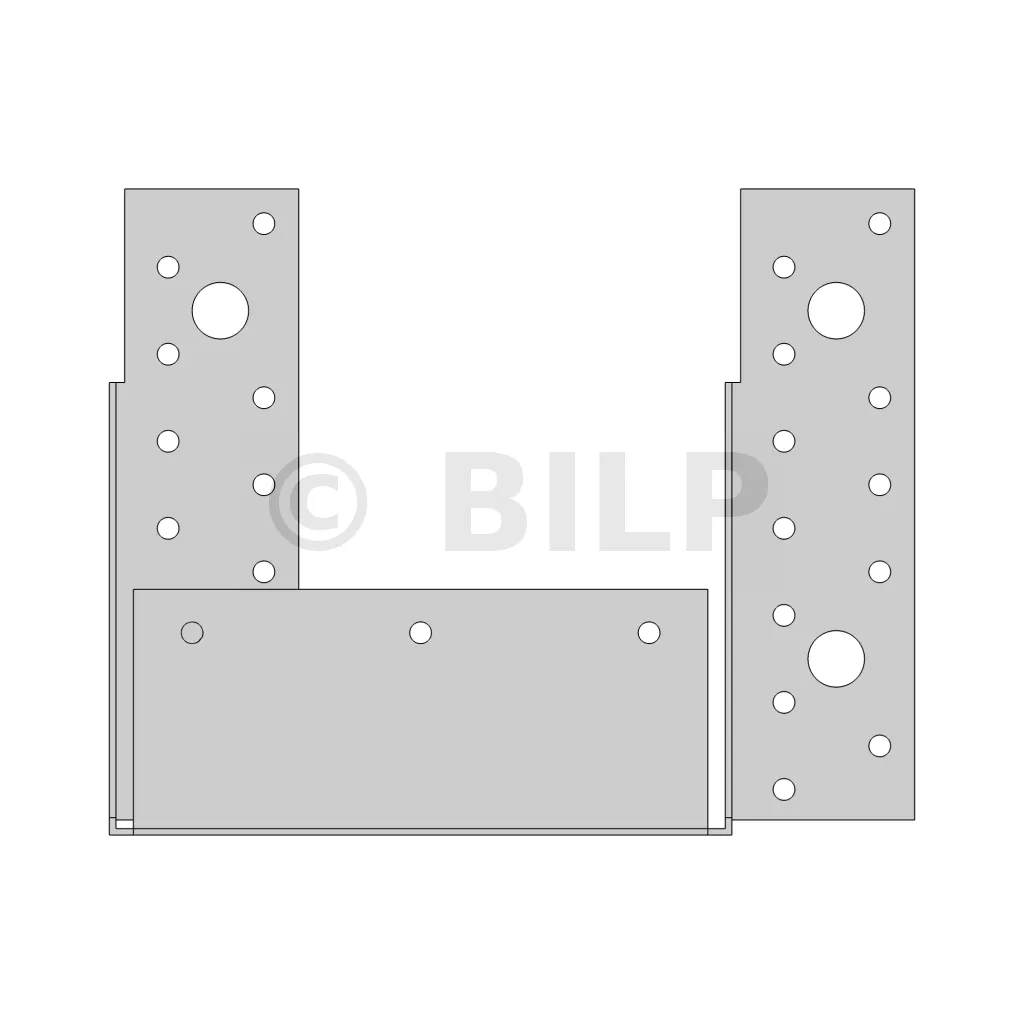 - Bohrungen auf dem HauptträgerSeitenwände : 6Ø5; 8Ø5x7.5 - Boden : 10Ø5