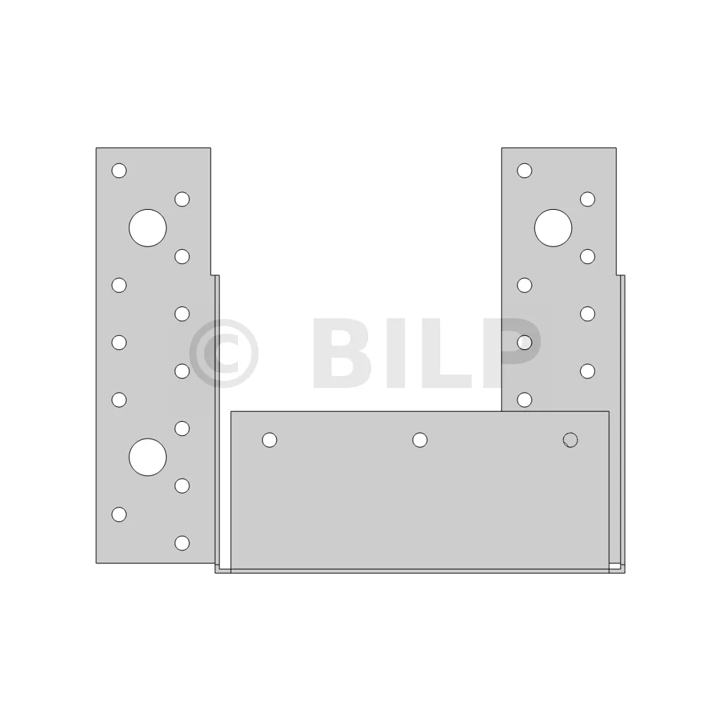 - Bohrungen auf dem HauptträgerSeitenwände : 6Ø5; 8Ø5x7.5 - Boden : 10Ø5