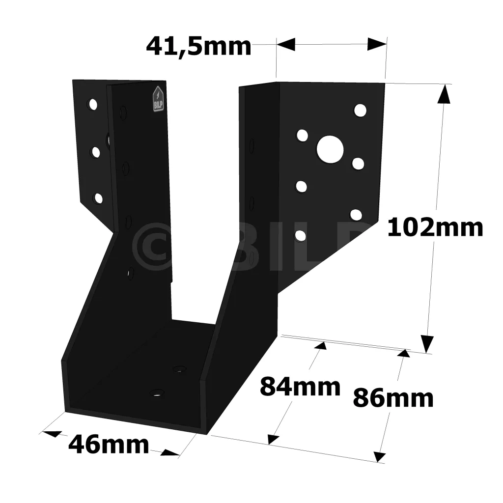 Balkenschuh mit außenliegenden Schenkeln - SAE-Sortiment SCHWARZES Finish (Dicke 2mm, Tiefe 84mm) - Réf. SAE250/46/2PB