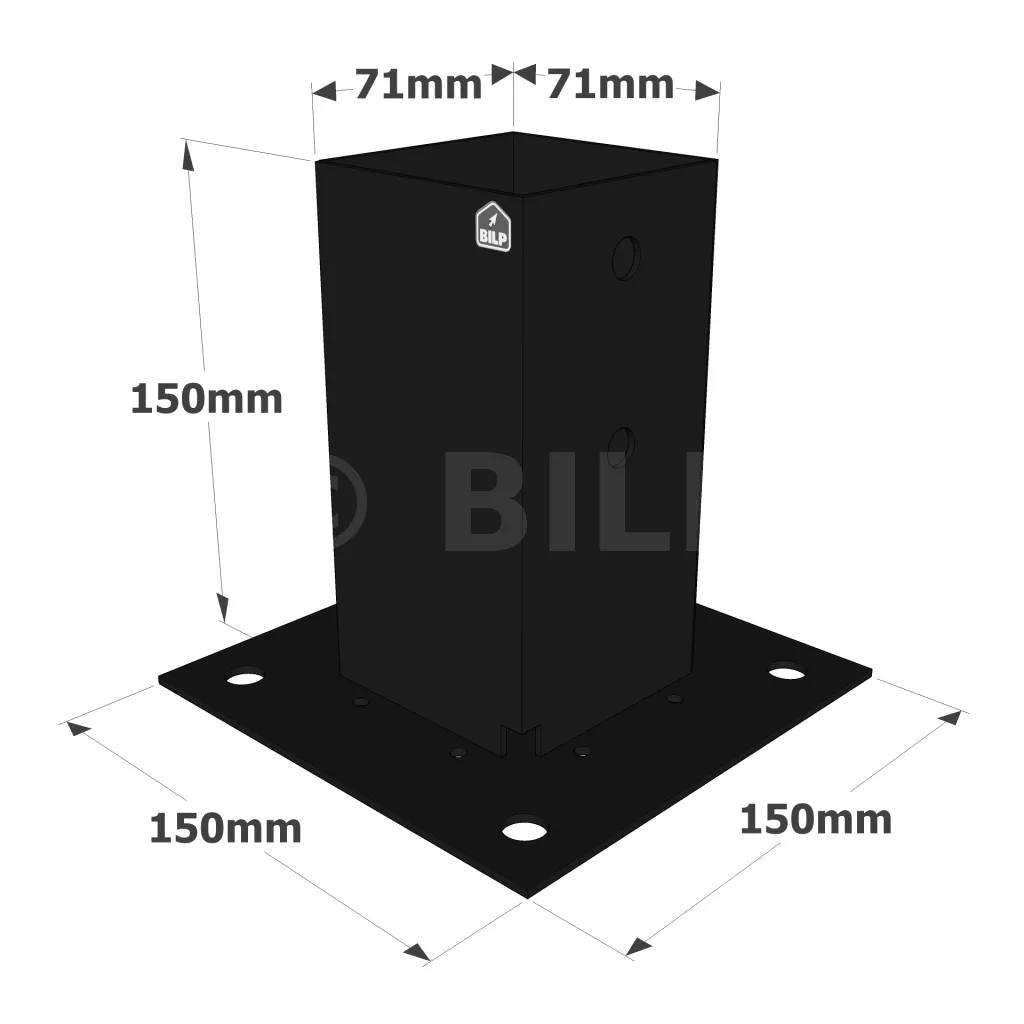 Die quadratischen Pfostenfüße aus schwarzem Blech PPJBTPB werden für die Erstellung kleinerer Arbeiten wie Zäune und leichte Gartenkonstruktionen empfohlen. Sie sind sehr einfach zu montieren und sorgen für ein diskretes Ergebnis in der Struktur.