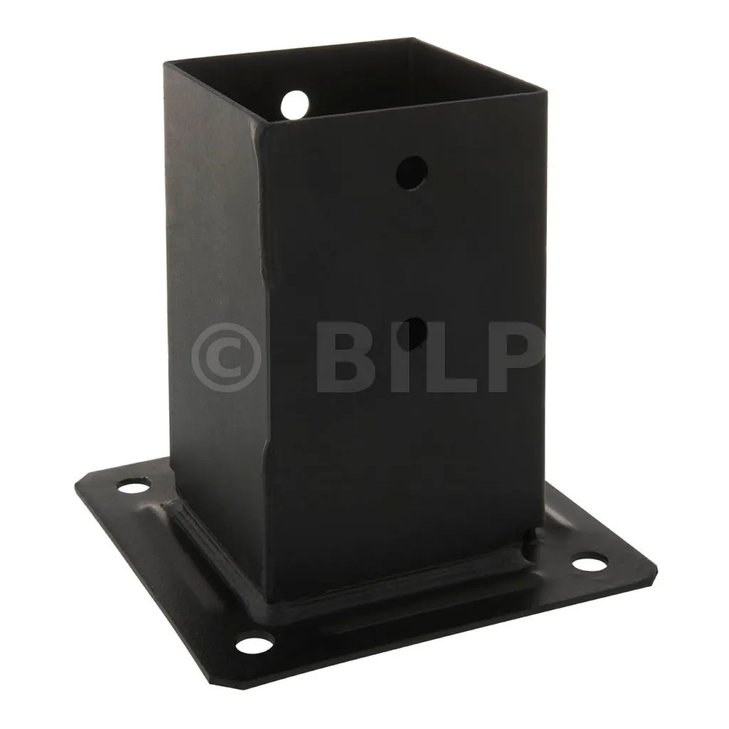 Die quadratischen Pfostenfüße aus schwarzem Blech PPJBTPB werden für die Erstellung kleinerer Arbeiten wie Zäune und leichte Gartenkonstruktionen empfohlen. Sie sind sehr einfach zu montieren und sorgen für ein diskretes Ergebnis in der Struktur.