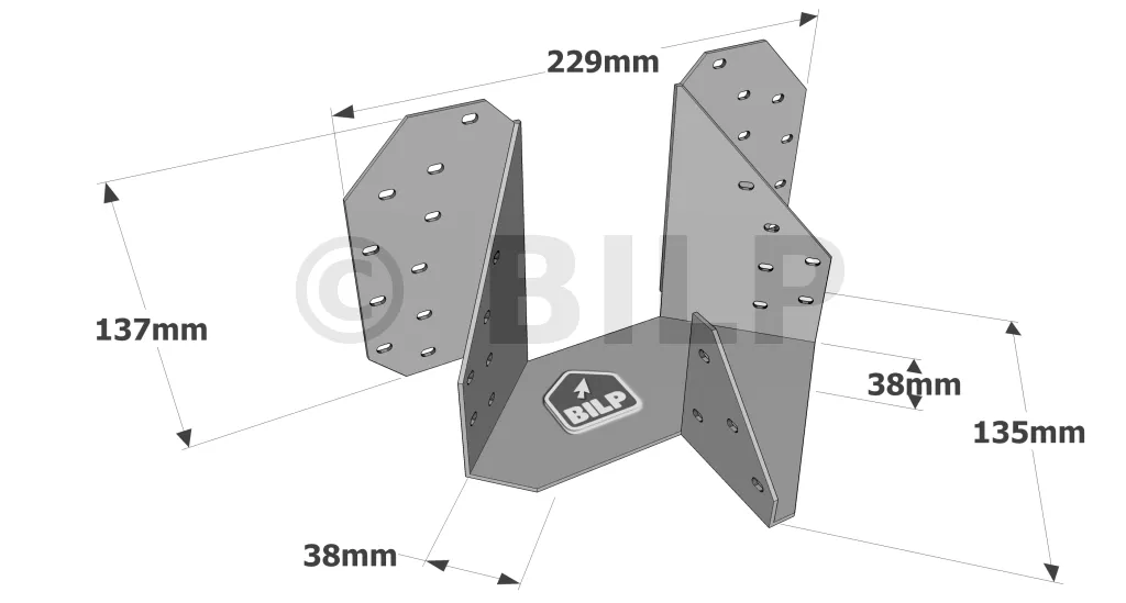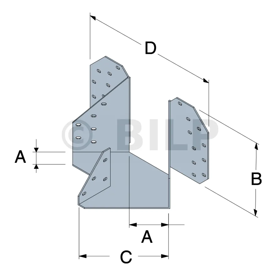 Die Balkenträger für Krüppelwalm THJA26 werden in dem Binder mit einem Querschnitt von 38 mm verwendet. Sie ermöglichen die Herstellung eines Walmdachs durch das Zusammenfügen der Grat- und Giebelhälften (2 Grate oder 1 Grat + 1 Giebel). Die charakteristischen Werte sind für verschiedene Konfigurationen angegeben.