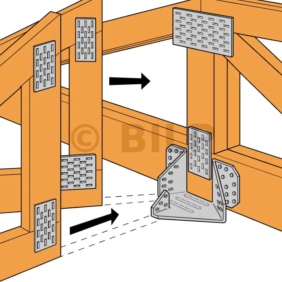 Der Rumpfbügel THJA26 wird im Fachwerk mit 38 mm Querschnitt verwendet. Es ermöglicht die Erstellung eines Grates durch Zusammensetzen der Grat- und Spannhalbbinder.
