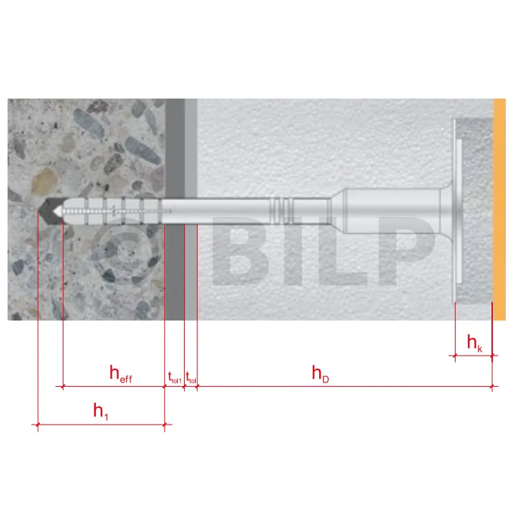 - hef: Verankerungstiefe (Die betreffenden Referenzen sind den Produktblättern zu entnehmen.)