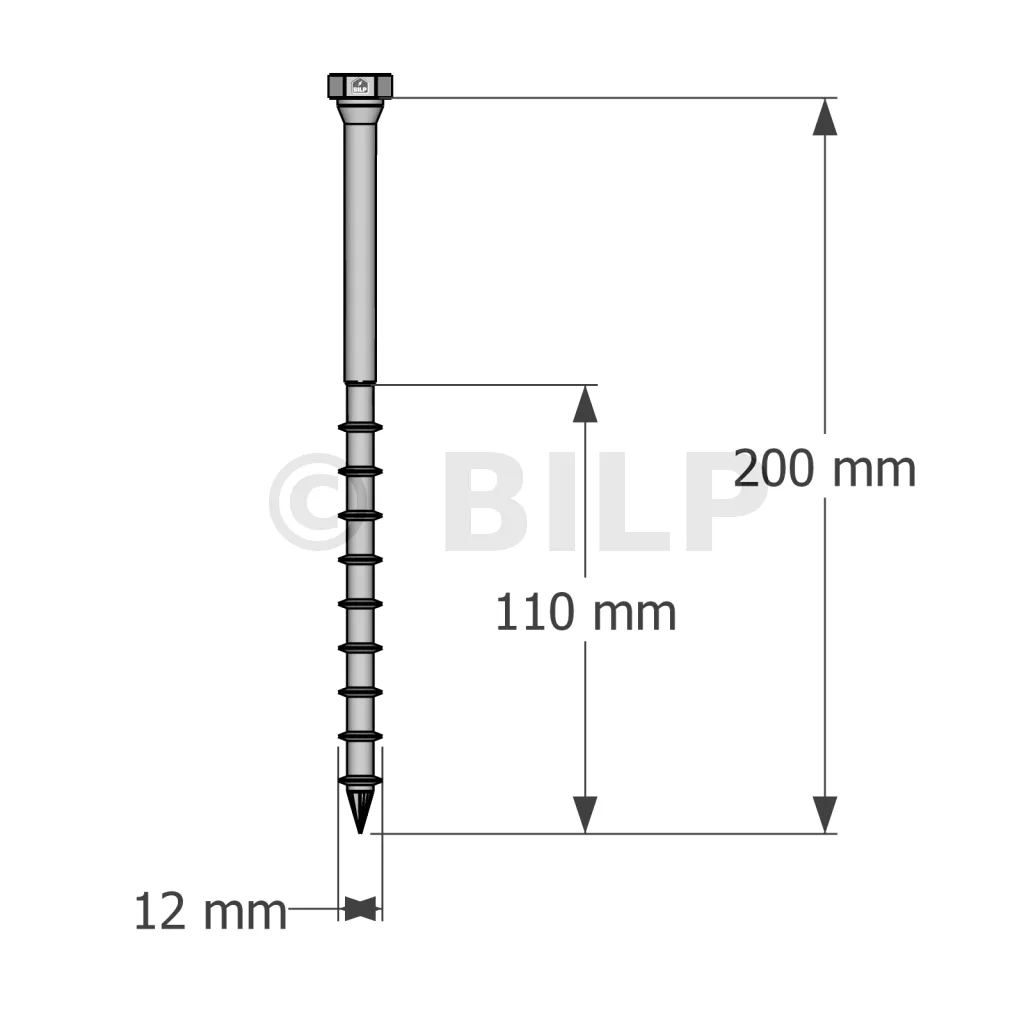 Stahl-Holz-Verbindungsschrauben, SSH12.0X200 - Réf. 75170