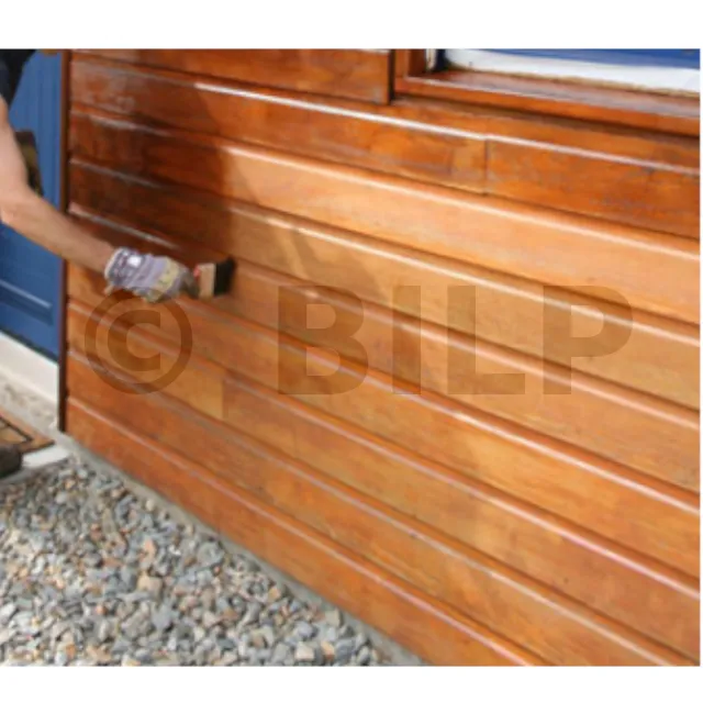 - Schützt und dekoriert Türen, Rahmen, Fenster, Balken, Verkleidungen usw. aus Holz mit Ausnahme von Rotzeder und Arten, die ein Antioxidans enthalten (z. B. Iroko). Vermeiden Sie harzreiche Hölzer.