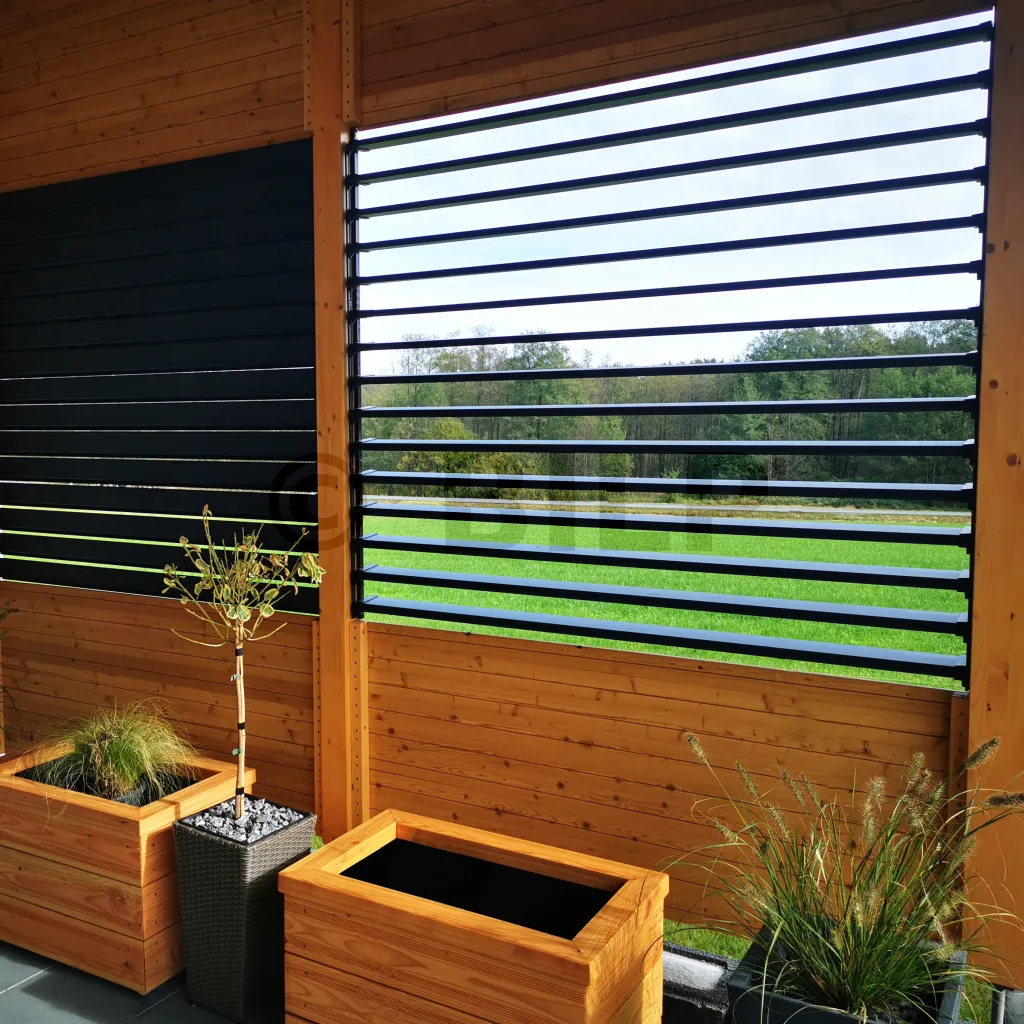 Suchen Sie nach einer effektiven und ästhetischen Lösung, um die Sonneneinstrahlung in Ihrem Außenbereich zu kontrollieren? Unser SUNDIY verstellbarer Klingenmechanismus bietet eine maßgeschneiderte und anpassbare Reaktion. Mit diesem System können Sie den Winkel der Lamellen Ihrer Pergolen oder Fensterläden präzise und einfach regulieren und so eine perfekte Lichtkontrolle und natürliche Belüftung gewährleisten.