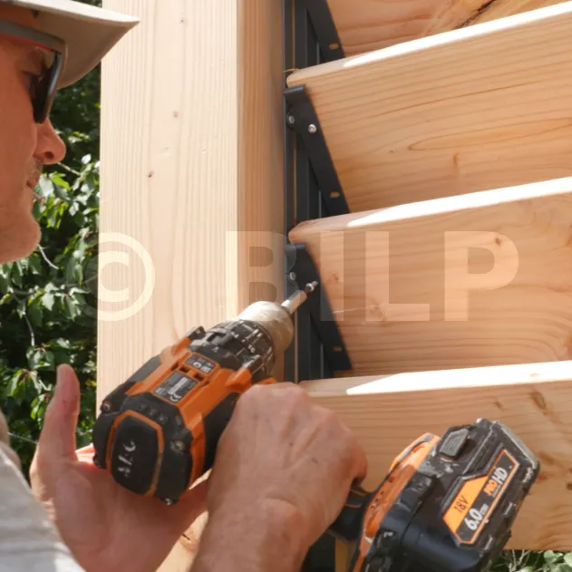 Die Mechanismen des SUNDIY-Systems sind mit Perforationen versehen, die zur Befestigung der Lamellen von oben dienen. Diese Befestigungsmethode ist für HOLZlatten unerlässlich, sie garantiert deren Halt.